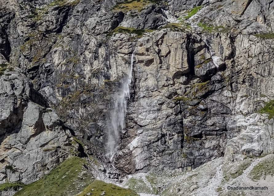close to 0C though we checked in the tent that it was 3C. The surprising thing was that we had not heard the roaring sound of waterfalls for quite a long time. When we came out of the tent, we saw that almost of major waterfalls had been reduced to a tickle. The reason was that in the night, due to very low temperature, glaciers stopped melting making the waterfalls almost non existent.