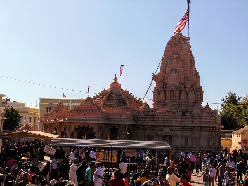 From the road end to the gate of the temple, we walked with the jostling crowd of devotees. As was our apprehension, there was a long queue of devotees for the darshan of Ashapura Mata. There were different queues for ladies and gents. Seeing the crowd of devotees and the packed sight-seeing programme ahead of us, we decided to skip the darshan..