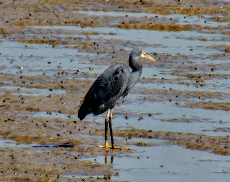 Black Egret on a swallow waters near Koteshwar temple.