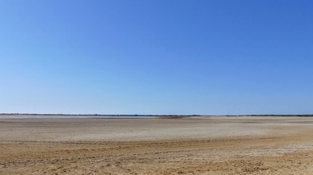 Flat land leading to the sea shore. Clicked from the car on road to Narayan Sarovar.