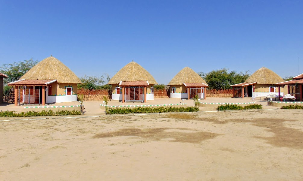 The advantage of Gateway To  Rann Resort was that apart from relatively lower tariff compared with the adjacent but pricey Tent City,  it was located in Dordo village from where  the entry gate to White Rann was hardly 4 kms. Having lost out in reservation, we had to book the alternative available resorts. So we had booked Rann Visamo Village Stay (@4500/- on twin sharing basis inclusive of tea/coffee, breakfast, lunch and dinner) at Hodka village which was located 23 kms away from White Rann.