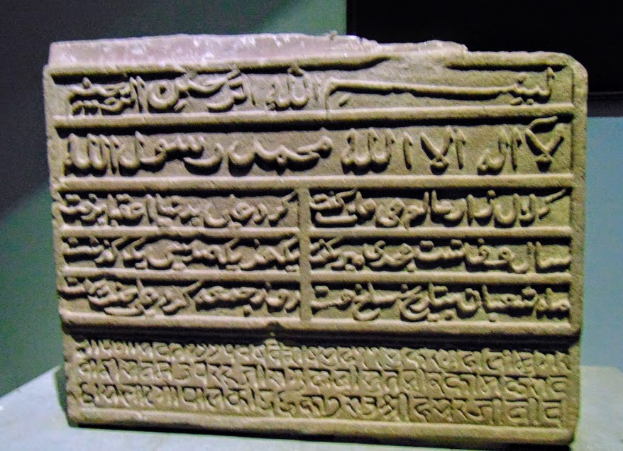 Death stone inscriptions in three languages.