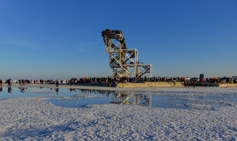 The Viewing Gallery appears to be the latest development in White Rann as it looks new.  It is made up of steel structure with staircases on two sides. The height of the Viewing Gallery is equivalent to a three storied building. Tourists can have 360 degree view of the unending White Rann. The vast salt desert lies on a flat land tapering towards the horizon thus giving a feeling that the earth is round.