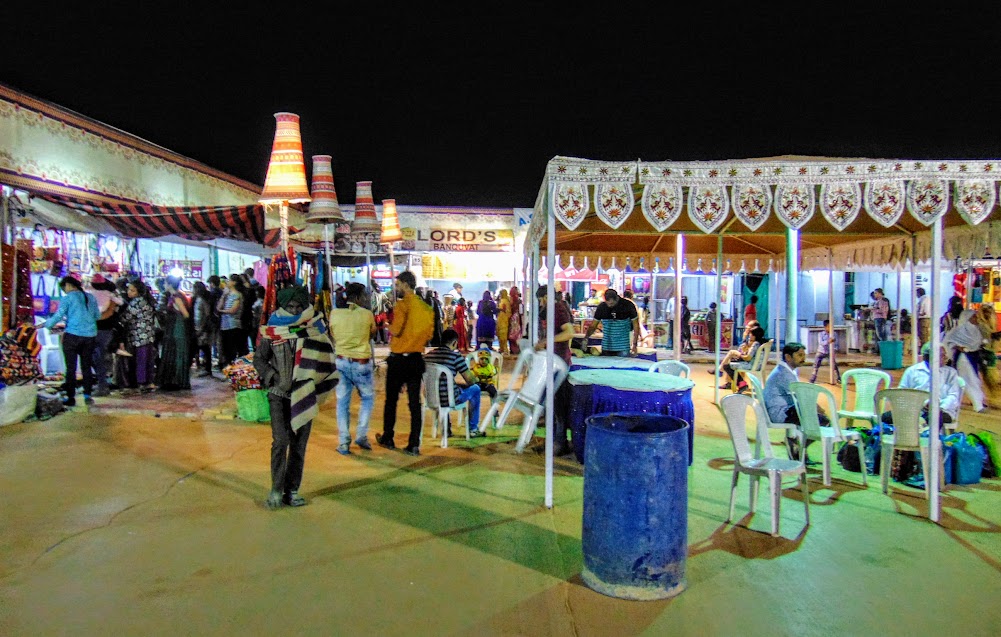 After completing visiting almost all the stalls, we went to see a photo exhibition of tourism in an adjunct pavilion. Next to it was a library which was set up for the Rann Utsav. The library had mostly the books on travels. We spent sometime in the library reading books relating to travels in Gujarat. We left Dordo village at around 8.00 pm to reach Rann Visamo in time for the dinner.