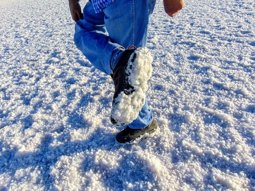 During our walk on White Rann, we came across some patches of swallow water, somewhat longer patches of soft salt land and rest the hard part. It is the soft patches on White Rann where one has be careful while walking over it as below the surface of white salt lies water. After all, it is a wetland.  In some places, there could be knee deep water below the surface of white salt. Probably, in this part, the total evaporation has not completed.