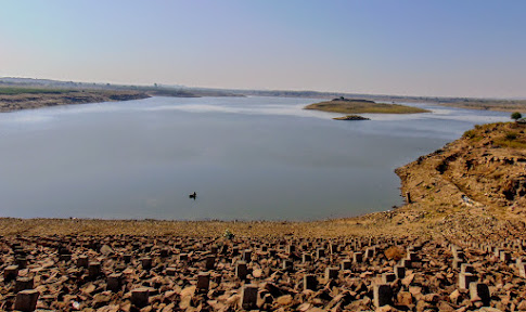 Today, we had planned to visit Banni Grassland on our way back to Bhuj during our final lap of the trip. However, our owner-driver told us that to travel inside Banni Grasslands, we required high ground clearance vehicle like SUVs whereas we had a car - Indigo Manza with us. Also, for bird watching, we had  to be in Banni Grasslands early morning. So the visit to Banni Grasslands was ruled out. The owner-driver suggested that on our way back to Bhuj, we can make a short detour to visit Rudrali (Rudramata) earthen dam.