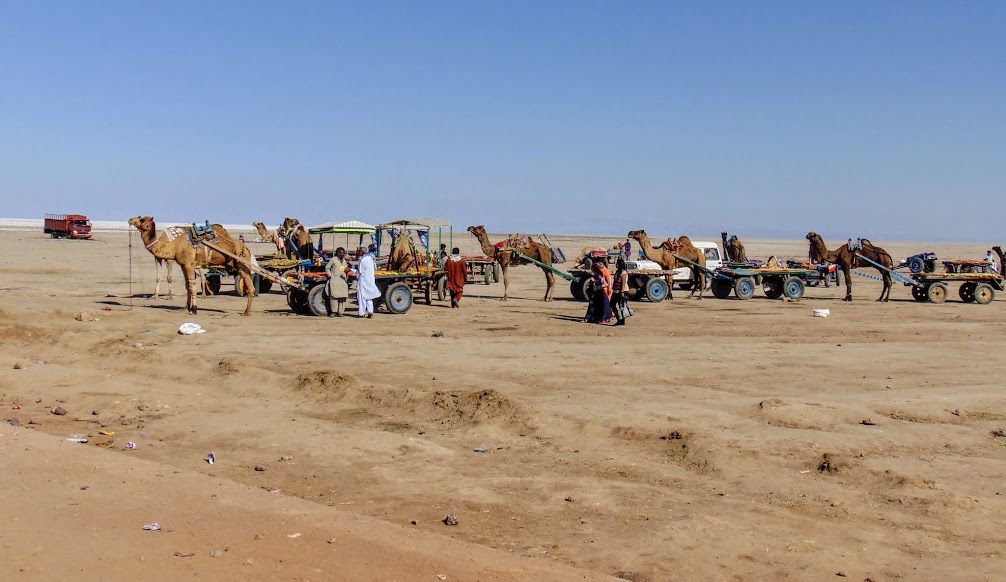 Camel carts waiting for the tourists after the entry gate.