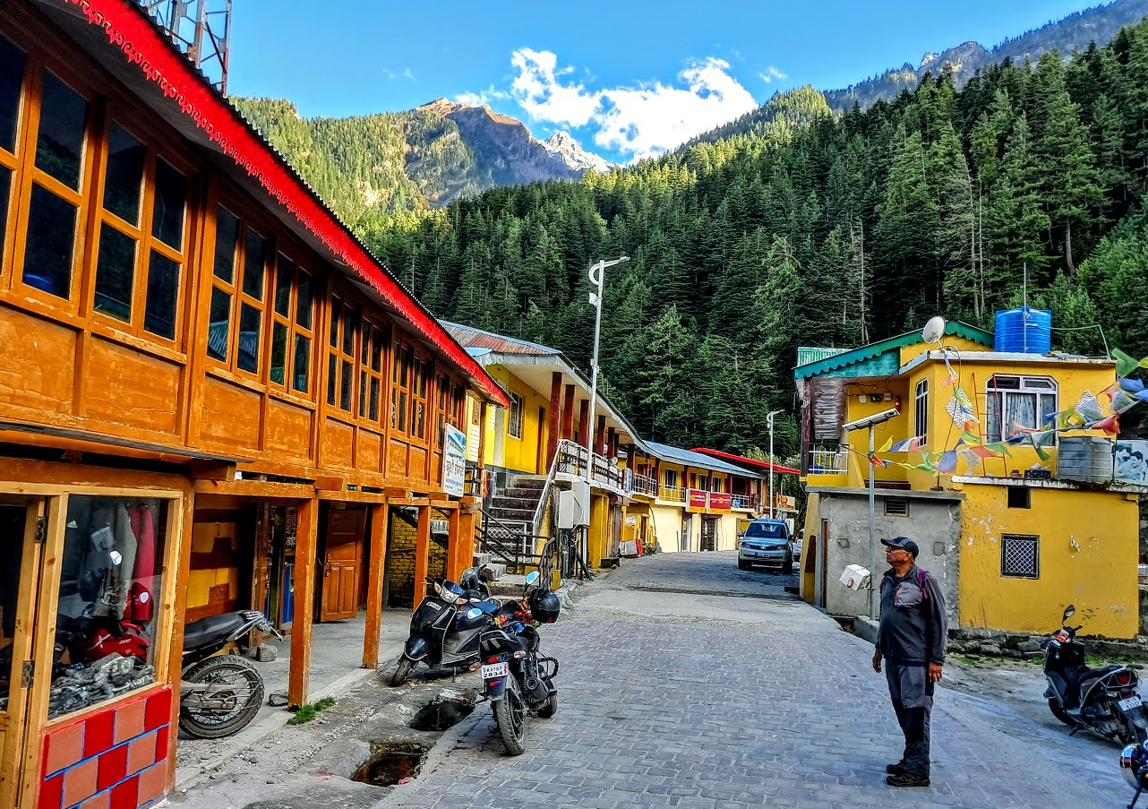 A street scene in Harsil in the evening. Only KS and I were on the street.
