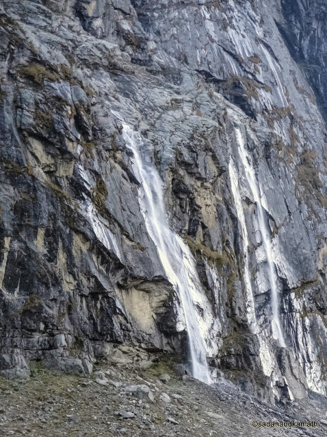 close to 0C though we checked in the tent that it was 3C. The surprising thing was that we had not heard the roaring sound of waterfalls for quite a long time. When we came out of the tent, we saw that almost of major waterfalls had been reduced to a tickle. The reason was that in the night, due to very low temperature, glaciers stopped melting making the waterfalls almost non existent.