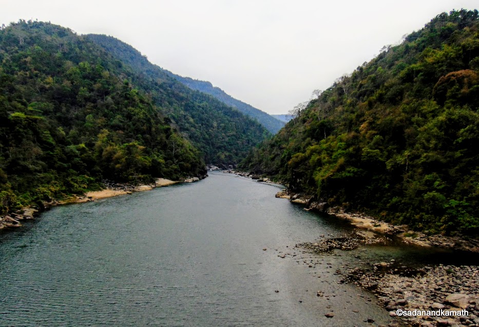 We came out of our log cottage around 6.00 a.m. to scout for some tea in the dabhas in the vicinity our home stay area. The sky was overcast and the cool morning breeze made us to wear jackets. Even though sun in this part of India rises around 5.30 am in the month of March, none of the dabhas were opened. So we decided to take a stroll on the shores of River Umngot. The water in the river was as clean as a transparent glass sheet despite a spell of heavy rains in the last evening.