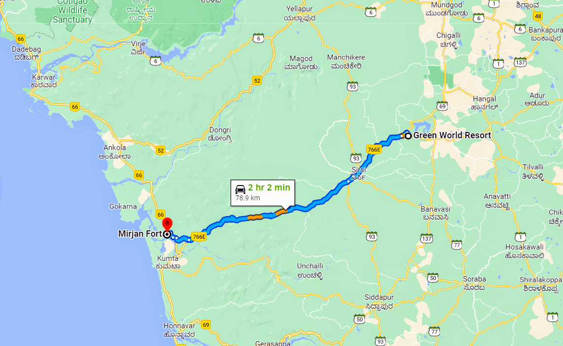 Driving direction from Green World Resort to Mirjan Fort.