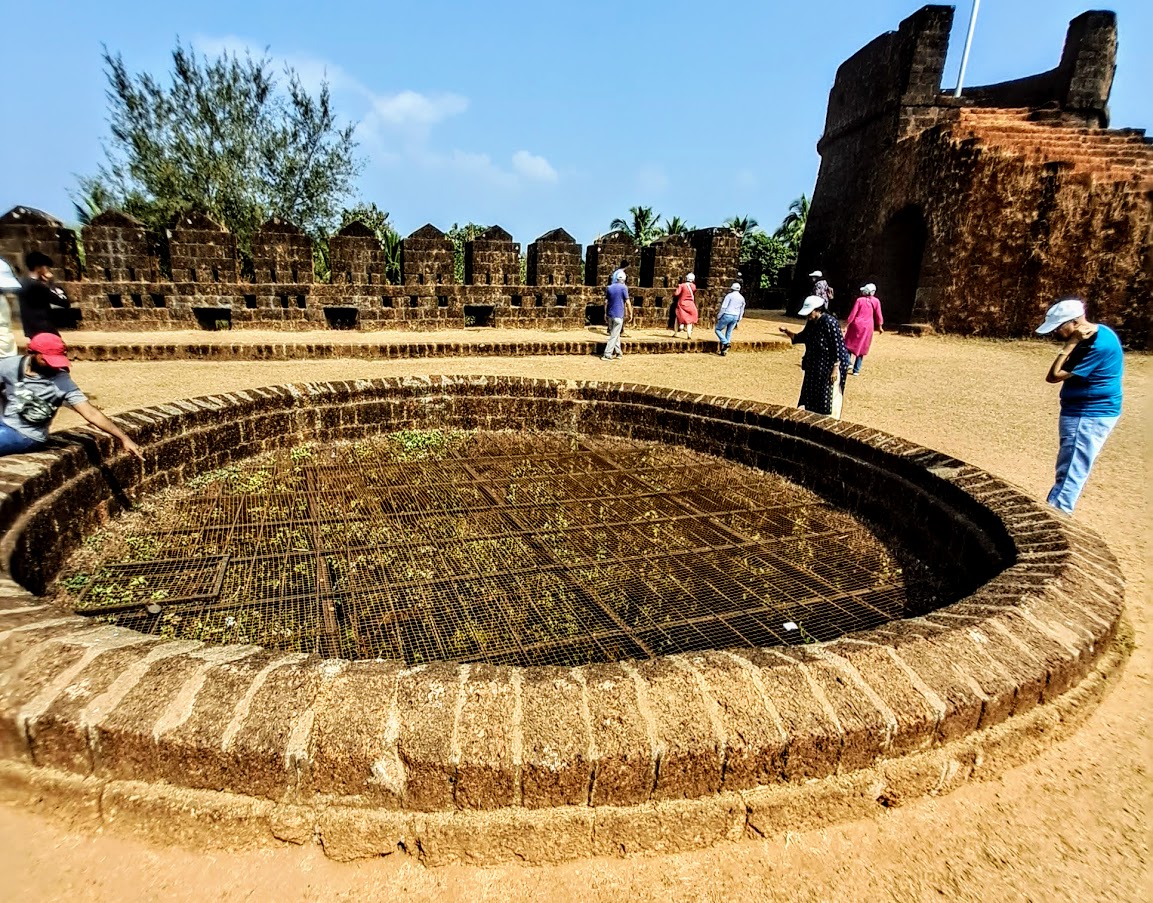 As we walk further by the side of the watchtower, we come across a single stone pillar with some carvings which would indicate that the pillar was a part of the temple inside the Fort which is no longer there. As we walk further towards the backside of the Fort, we come across another open space with ruins. The remains of the ruins and two wells inside the Fort indicate that there were houses for those who were permanently settled here in connection with both the trading as well as for the protection of the Fort.
